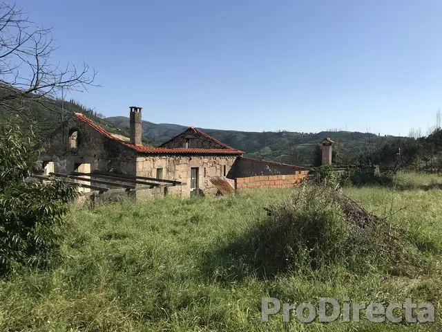 Farm with dwelling house with three annexes that have burned in 2017 are for sale in the Avô area with about 8.000 m2 of land. The proximity of the tar road allows easy access and space for car parking of around 500m2. The buildings in a mixture of schist and granite keep the walls in a good state of repair making their reconstruction easier and more economical. The farm has water and electricity, a kitchen and a bathroom that still exist. The view is fabulous, facing southeast with very good sun exposure, with agricultural land and spring water, a borehole with pump for a existent cement tank.