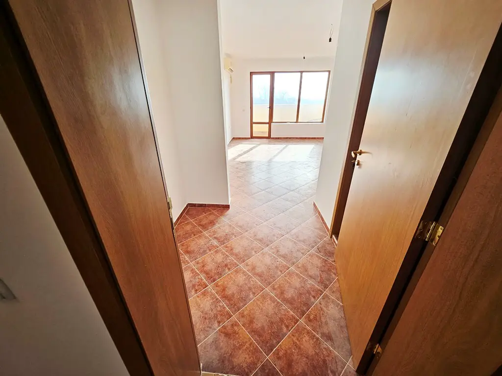 We offer for sale a beautiful, spacious studio with sea and mountain views. The complex is located 2 km from Sunny Beach and offers an outdoor pool, a poolside bar, a restaurant, security and video surveillance. It is located at the foot of the Stara Planina Mountains, on the road to the village of Kosharitsa. The place is very quiet, beautiful and combines the charms of the mountain and sea climate. The complex has a large landscaped garden, many cool corners for relaxation, a large pool, a playground, parking for owners and guests. The complex is a favorite place for families with children to relax, due to the safe territory and the clean, healthy climate. There is a supermarket in the neighboring building. There is a bus stop right next to the complex. The apartment we offer is on the third floor, with a beautiful view of the mountain and the sea. It consists of an entrance hall, a spacious room, a bathroom with toilet and a nice terrace with sea and mountain views. The built-up area is 37 sq m. Maintenance fee - 600 Euro per year.