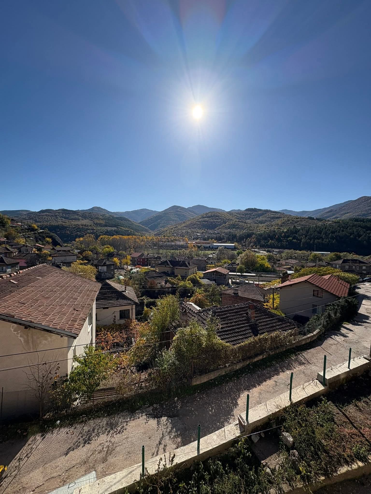Refurbished and partially furnished country house with plot of land and nice panoramic views situated in a big and lively village near river just one hour away from Sofia, Bulgaria. The property is located within the limits of the settlement about 10 minutes away by foot from the center, the river, local bar, restaurant and shops, the train station, post office, library, etc. The house has two floors connected via internal stairs. The ground level consists of corridor, kitchen, dining room and shower room with toilet. The second floor holds spacious living room, two bedrooms and terrace with great panoramic views towards the surrounding area, hills and mountains. The property comes with a plot of land which holds some fruit trees, vines and flowers. The village where the house is situated is about 70 km north of Sofia, Bulgaria. Sofia is the country`s national capital city and can be reached over rail and road within about one hour of travelling from here. The regional capital city Vratsa is at about half the distance and travelling time. Both cities can be reached easily with car or train. The village offers many amenities such as supermarket, grocery stores, library, mayor`s office, restaurant, bar, post office. There is also a big aqua park in the outskirts which provides additional options on how to spend a cool and happy summer day. The area around the village is very nice and picturesque. The longest river in Bulgaria, Iskar, passes through here providing plenty of nice spots for fishing and camping. There are also many tourist routes and trails going into the nearby forest and mountains as well as several interesting and popular tourist sites. Nice rural property at a fair price looking for its new owners.