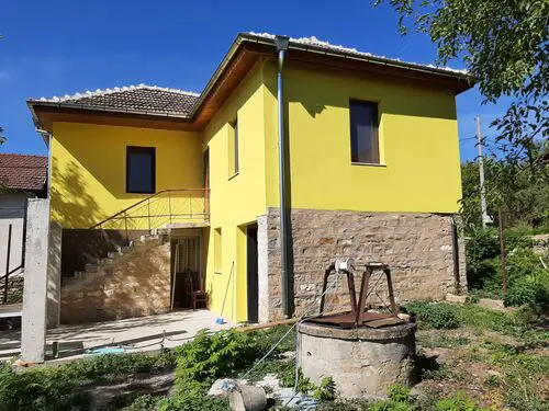 Renovated and furnished country house with big barn and spacious yard situated in a quiet area within the limits of a small village 100 km away from Sofia, Bulgaria. The property has access to three streets. The main gate provides access from a side street which is not frequently used. Through the small gate you get into the yard and reach the house. This building has two levels which are connected via external staircase made of carved stone blocks. If you continue further away you can access the ground floor of the house where four premises are situated - living room, kitchen, one bedroom and bathroom with a toilet. Going up the stairs you get to the second level which holds corridor, master bedroom, dining room, kitchen and one more bathroom. The house had been extensively renovated recently and received new coat of paint and plastering on the outside as well as external insulation. On the inside all floors are new, the walls have been stripped down, replastered and repainted, all the wiring, plumbing, windows and doors are brand new. The house also has central heating system which keeps the place nice and warm in the winter days. The roof had been revised and repaired too. It received new coat of paint and gutters. The yard is still undergoing clearing and repairs as if the place does not get sold, the current owners have more plans and ideas about it. The barn is located near the house and represents a big, spacious two-storey structure which can be rebuild and turned into a guest house, second house, workshop with garage and storage area, etc. The driveway is located behind the house and has direct access to the yard and the barn so delivery of various materials is not a problem therefore the barn can also serve as a business premise. The yard is divided in two section – front, which holds the house, the barn and plenty of open space, and back, which is mainly covered with grass and used to be an orchard back in the old days. Some of the fruit trees are still in place and in good shape so one can take good care of them and enjoy the ripe fruits like cherries, apples, plums, etc. The village where the property is situated is several kilometers away from train stop, river and monastery. Along the river banks one can find plenty of nice spots for fishing and camping. There are two towns within about 15 km distance from the house. One of them is the center of the local municipality and seat of the local council. It provides good transport connections with the national capital city Sofia, the regional capital Vratsa and many other towns and village across the country. The town also has a hospital, fire department, police station, gas stations, many shops and stores, restaurant, a couple of bar and coffee shops, farmer`s market, etc. Great rural property with quiet location, plenty of outside space, clean air and nice views awaiting its new owners.