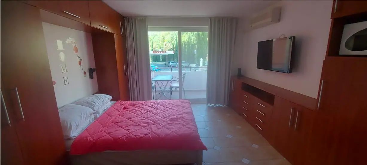 Studio right on the front beach. Furnished studio on the 2nd floor (out of 4), 45 sq. m. Terrace. No sea view. Mountain views - northeast.