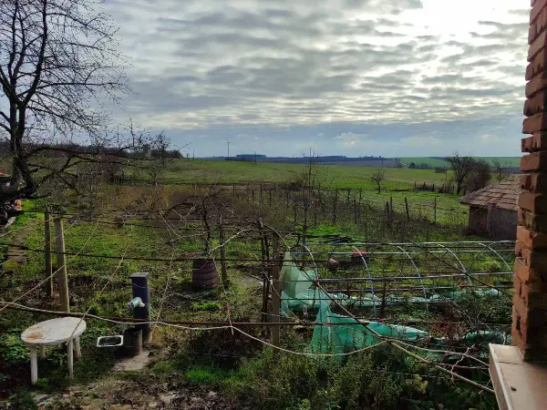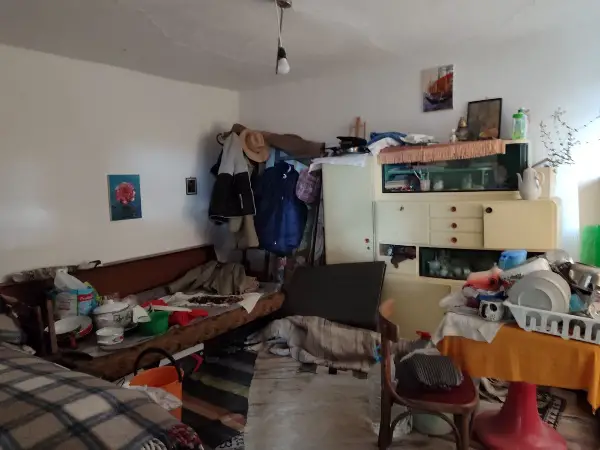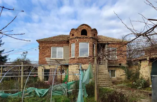 Rural Two-story stone and brick house with PVC windows. The first floor has a corridor, 2 rooms, and the second floor has a dining room with a lounge, two rooms, a kitchen. There is also an outbuilding attached to the property.