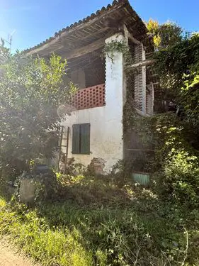 For sale is a portion of a property requiring complete renovation, comprising 5.5 rooms on two floors plus approximately 420 square meters of land.