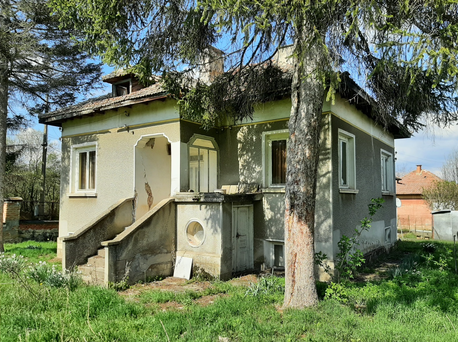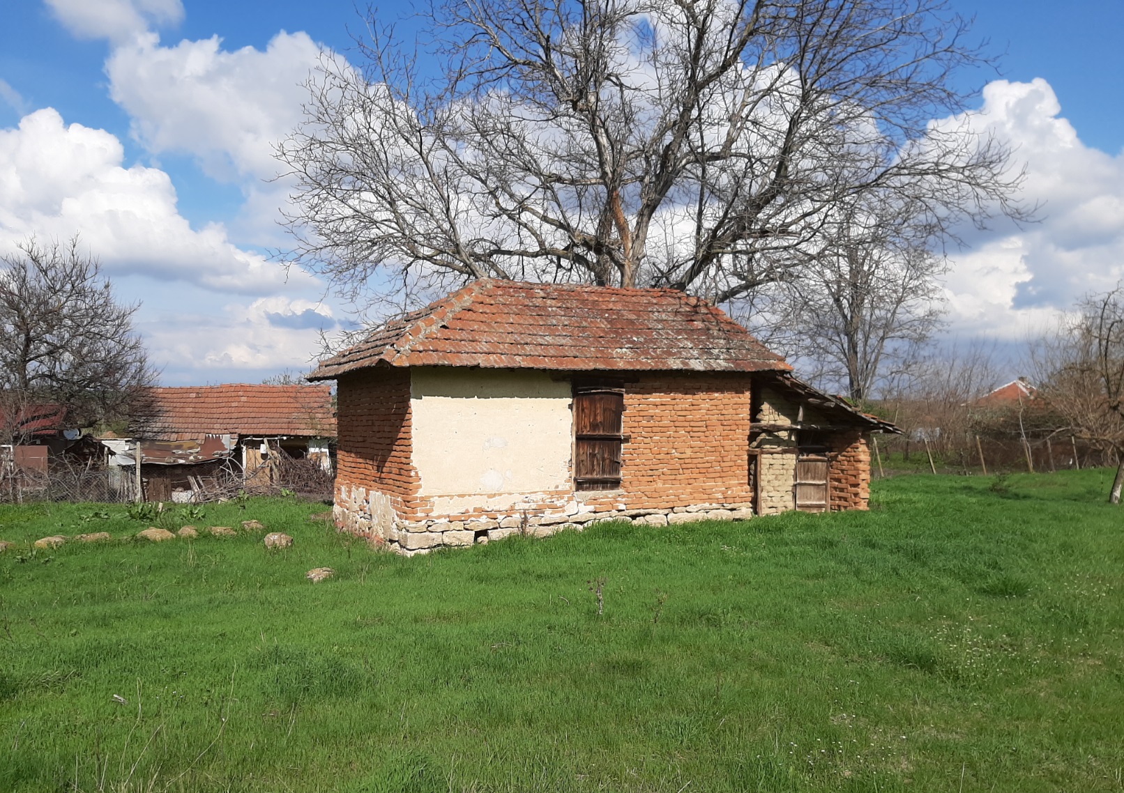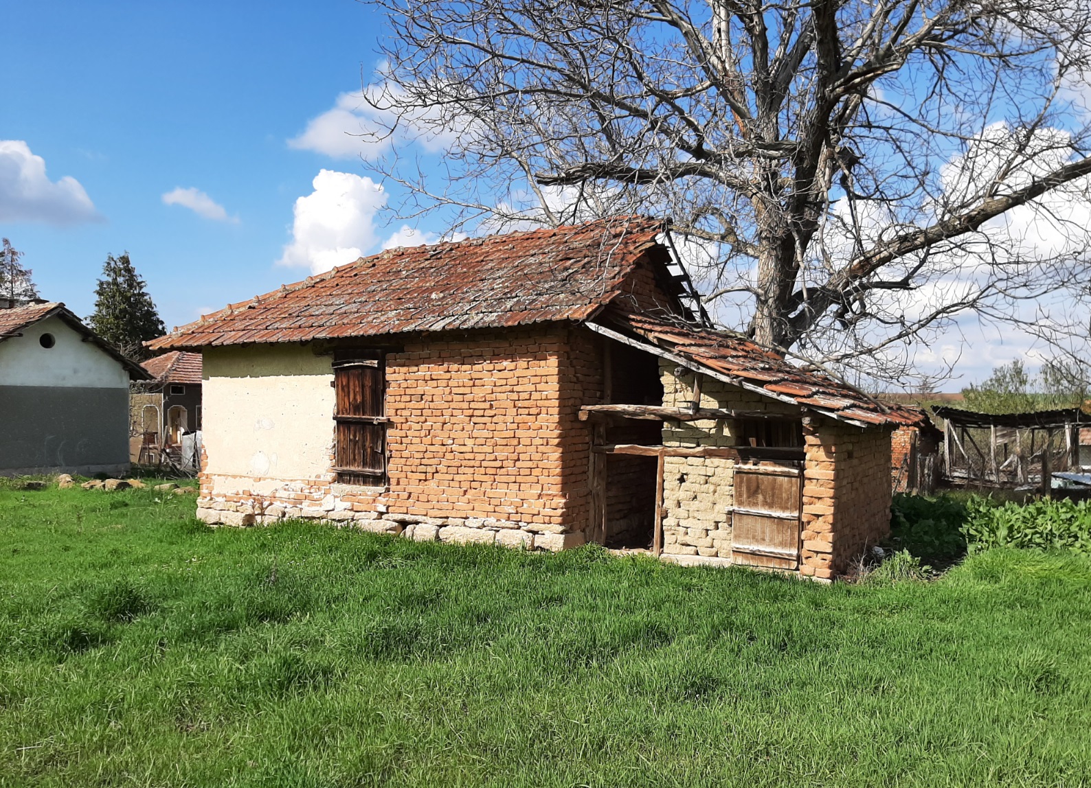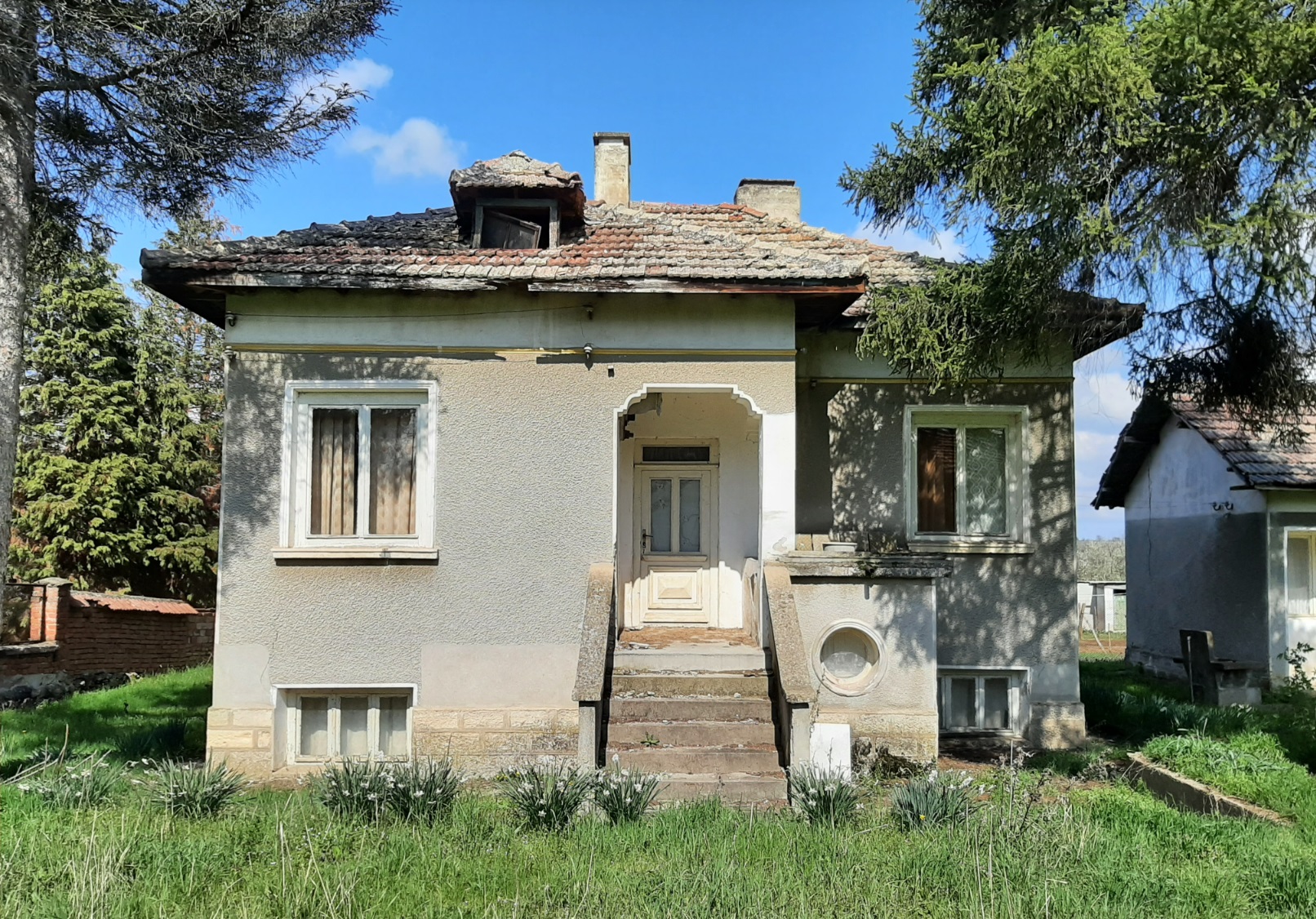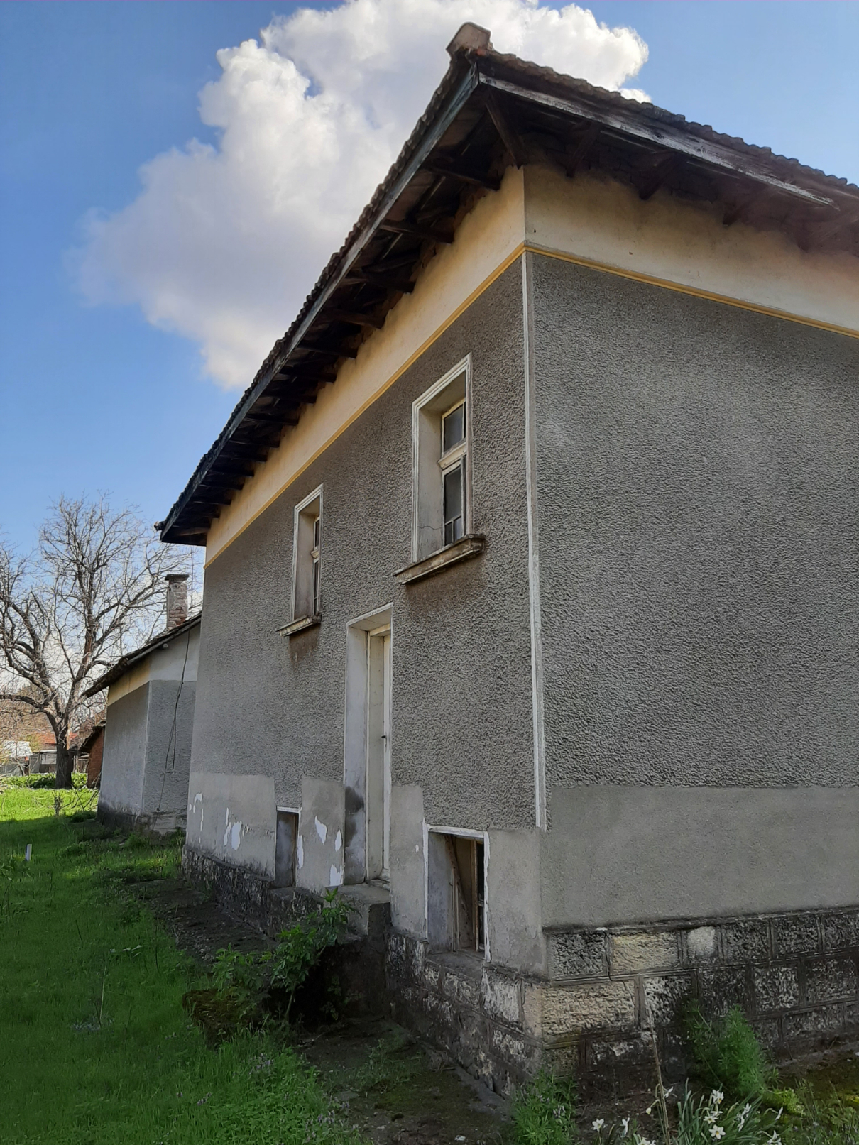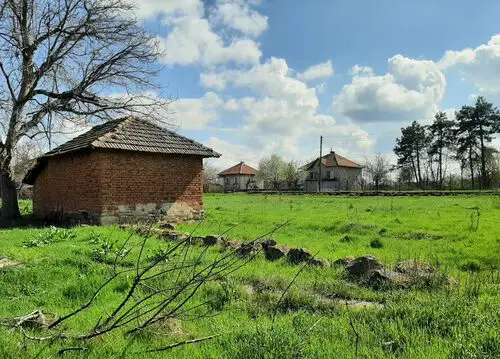 Old rural house with annex, barn and big plot of land situated in a quiet village near lake 40 km away from Vratsa, Bulgaria. The property has two floors connected via internal wooden staircase. The ground level holds three rooms (living room, kitchen and storage) and corridor. Over the stairs one can get to the second floor where corridor, closet and three bedrooms are situated. The annex is located next to the house. It has one floor and consists of one very big premise which serves as kitchen and dining area. There is also a storage building located close to the annex. This structure once was used for keeping the fire wood. The barn is located in the yard across from the house. It is spacious and divided into different areas depending on the purpose of use in the past – animal shelter, grain and hay storage, parking area, tool shed, etc. The property comes with a nice plot of land which is very fertile but is currently covered with grass. The real estate is divided from the neighboring properties and the streets by solid fences made of wire and bricks. The house had been empty for several years therefore it requires a bit of cleaning and attention as well as some renovation. The village where it is situated is popular among foreigners as there are already several of them who are living here all year round and there are some who use their properties as holiday homes. The house is situated about 100 meters away by foot from the local shop, bar, post office and mayor`s office. The village is not too populated so one can enjoy lots of peace and quiet. The nearest town is also the seat of the local council and is situated about 12 km away from here. There one can find gas station, police station, bank branch and ATMs, shops and stores as well as administrative services, farmer`s market, library, etc. The distance to the regional center Vratsa is about 30-35 minutes of driving, while Sofia and Sofia International Airport are about 2 hours away. Old rural property with lots of potential, good location and easy road access all year round.