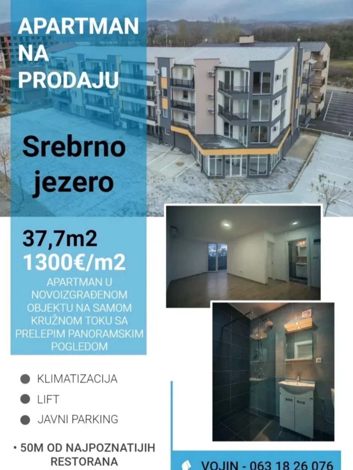 New apartment on the third floor with a view of the greenery around Silver Lake. Air conditioning, separate terrace, PVC windows, equipped bathroom.