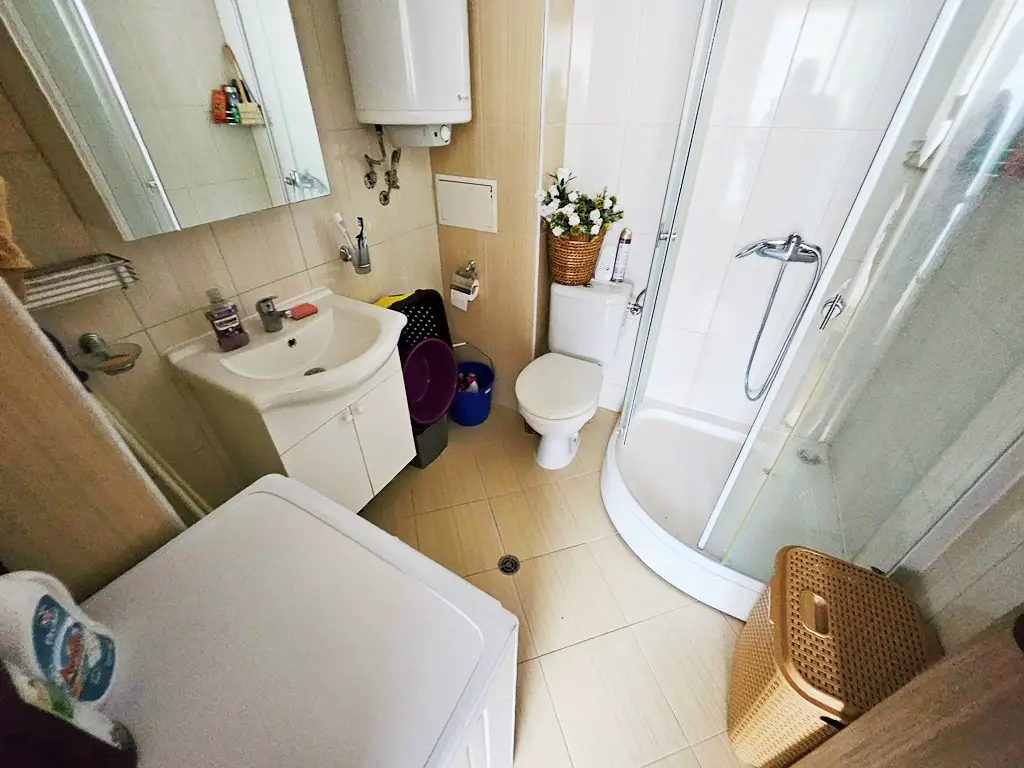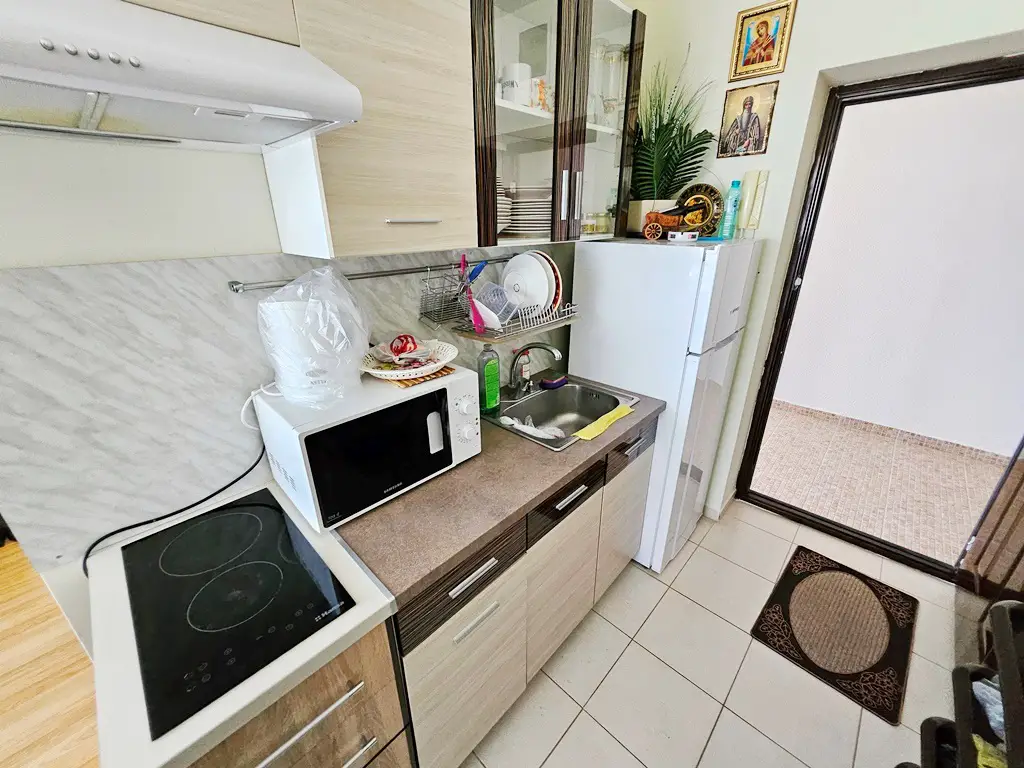 Real estate agency Bulgaria House present you a magnificent studio for sale in Sunny Beach. The apartment is located on the 4th floor and has an area of 36 sq m. The apartment is modernly furnished and has everything you need. The bathroom and toilet are on one. The are conditioner and a large terrace overlooking the courtyard of the complex.