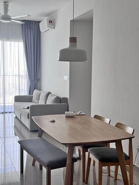 Enjoy a move-in ready home equipped with modern furnishings such as air conditioning, TV, sofa, dining set, kitchen cabinet with hood & hob, refrigerator, washing machine, and more.