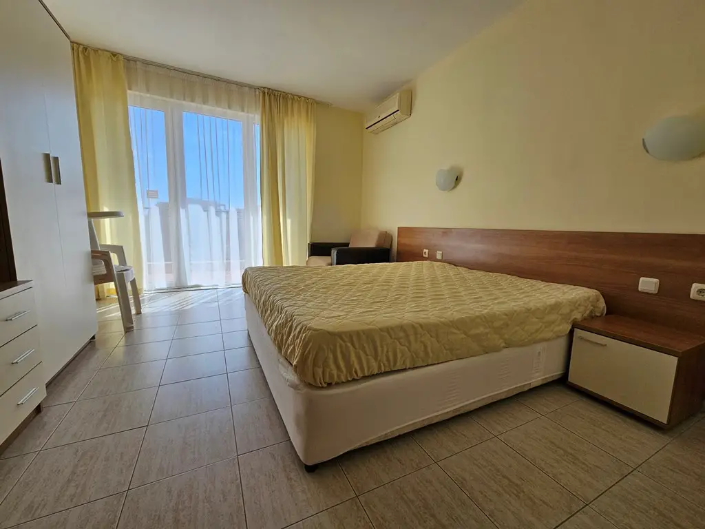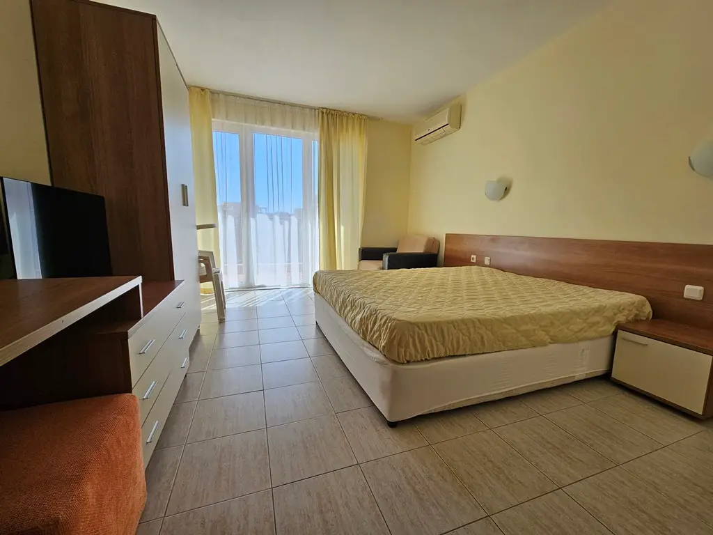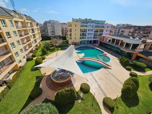 For sale is this furnished studio in Excellent condition located in complex Pollo Resort, Sunny Beach. The complex is located at about 500 meters from the popular Cacao Beach area and at 2 km from the old town of Nessebar. Pollo Resort has a big outdoor swimming pool with section for children, pool bar, lift, parking, security, reception, gym and SPA.