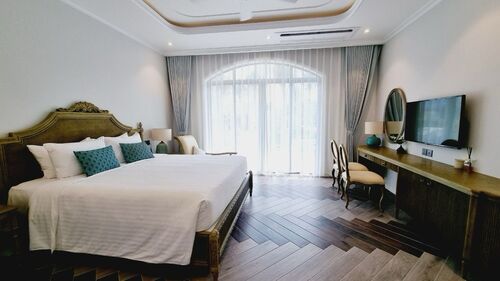 Located at Bai Truong, Duong To commune, Phu Quoc district, only 5 minutes from the airport, Sunset Sanato Resort & Villas is your great vacation destination with more than 110 beachfront resort villas, the resort stands out with its unique design. Modern and sophisticated design, including more than 400 rooms with sea view or garden view, swimming pool, Sunset Sanato Resort & Villas is proud to be an ideal vacation destination for your family, friends and business trips. Rooms and villas are designed in a French country style with a "tropical breath", a harmonious and elegant combination of interior style and color, along with green areas of trees and miniature landscapes. creating a gentle, elegant space for customers to comfortably stay.