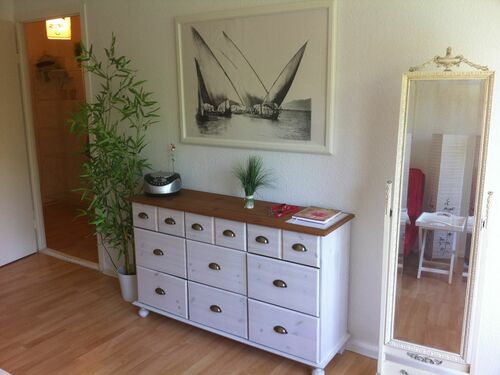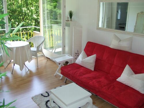 It has a sleeping area with a large bed (160 x 200cm), a sofa bed, TV (cable), CD radio, table with two chairs and a sideboard.