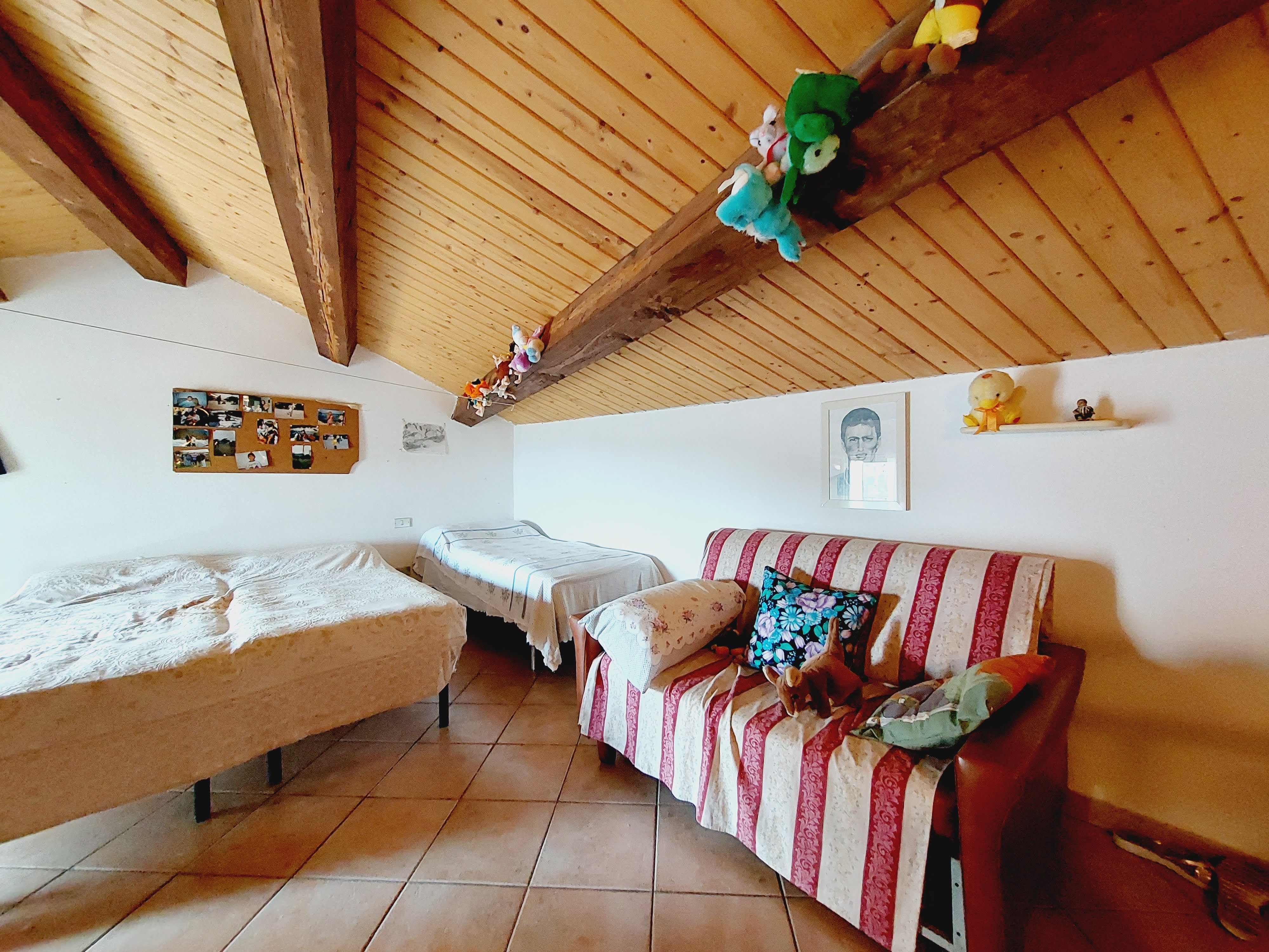 The first floor features a double bedroom with a balcony and private bathroom. Going up to the second floor, there is another spacious double bedroom, featuring a charming wooden ceiling and a panoramic terrace offering spectacular views of the village of Castelbottaccio.