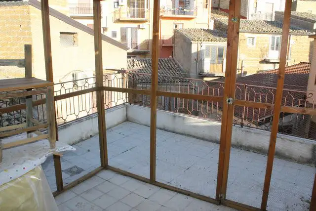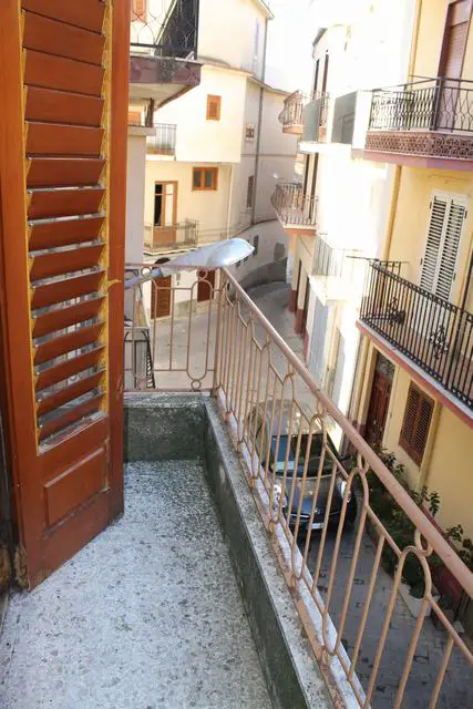 A four storey townhouse located in the heart of the Historical Town Center of Cianciana, with an area of about 50 square meters per floor for a total surface of about 200 square meters. The ground floor with entrance from Salita Carmelo is used as a kitchen/dining room and a bathroom. On the first floor there are two rooms both in the light and a bathroom, with two marble stairs leading to the upper floors. On the second floor there are two rooms both in the light and in a bathroom. The third floor is composed of a kitchen and a panoramic terrazza. The house is located a few steps from the main piazza of the town and the historical piazza of Largo San Gaetano.
