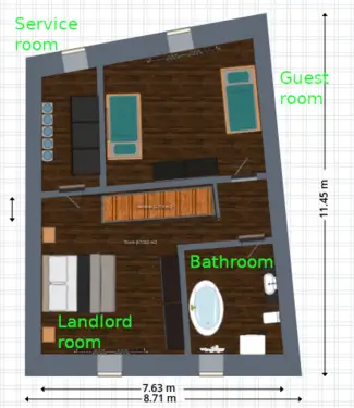 The house plan is the closest as possible as the original version at the Cadastre.