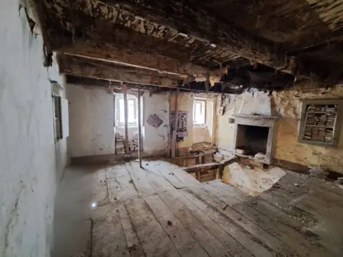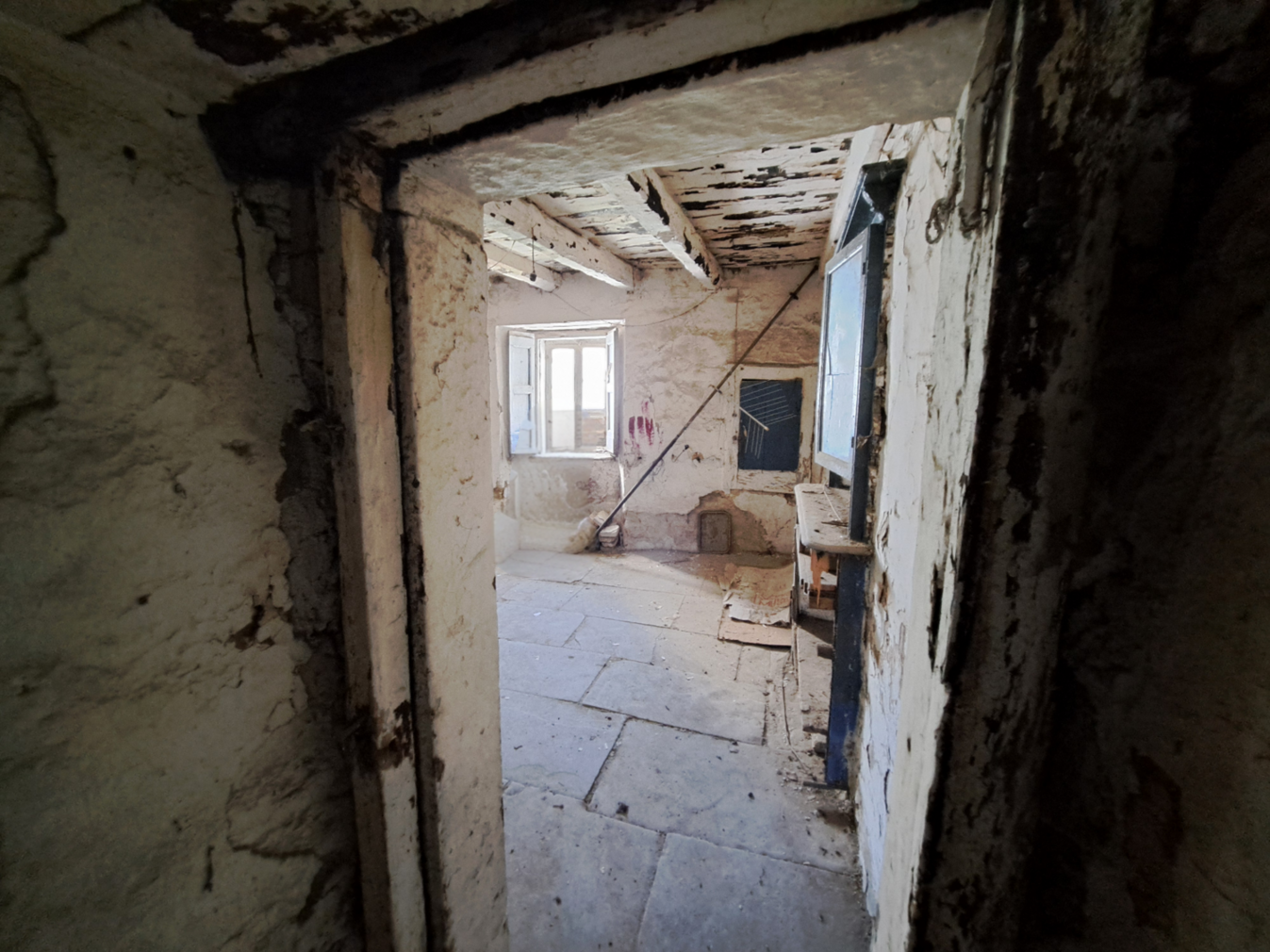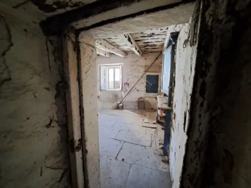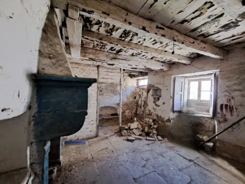 The house has solid and thick walls, it was recently upgraded with a brand new roof (2023). It’s connected with other properties, so energy class will be benefiting when reconstructed. From the bottom to the top: a stone-arched basement with a a stone well. A ground floor with main entrance hall and a small bathroom. A first floor with dining room facing the courtyard and a living room, both with original fireplaces. A second floor with two bedrooms, landlord bathroom and service room. Within the property is a courtyard, with a chill out area and the possibility of installation of a pergola with photovoltaic/solar panel system.