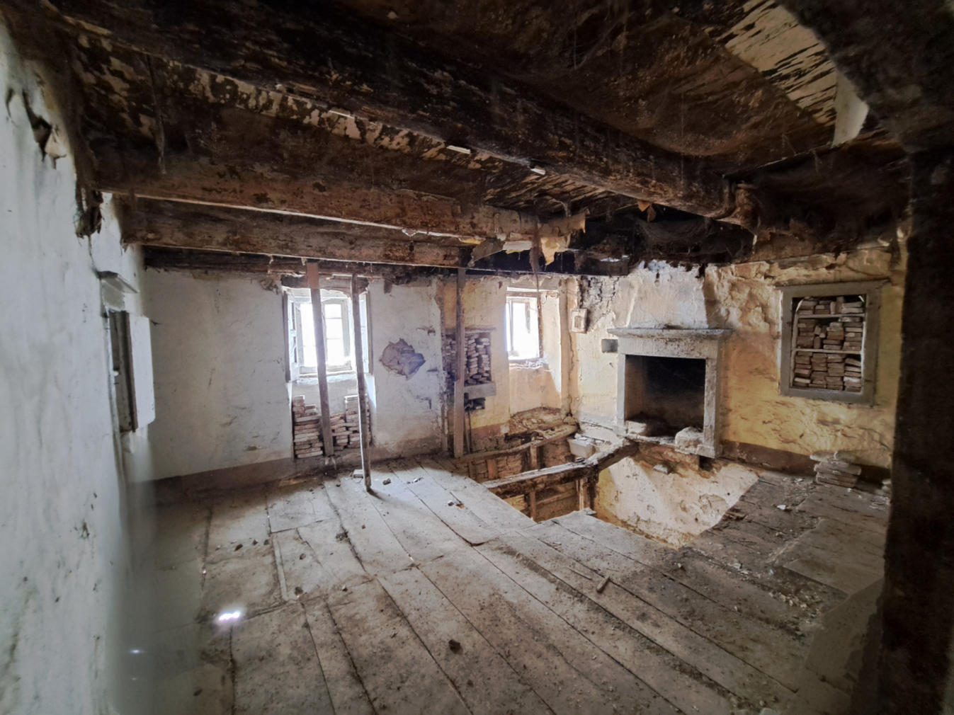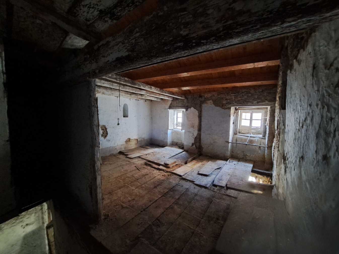 The house is sold as a renovation project. The video and photos are a mix of original and rendering that can show better the house spaces and possible transformations: