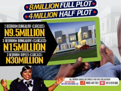 Prices and Land Offers: N8m (Installmental payment plan available)