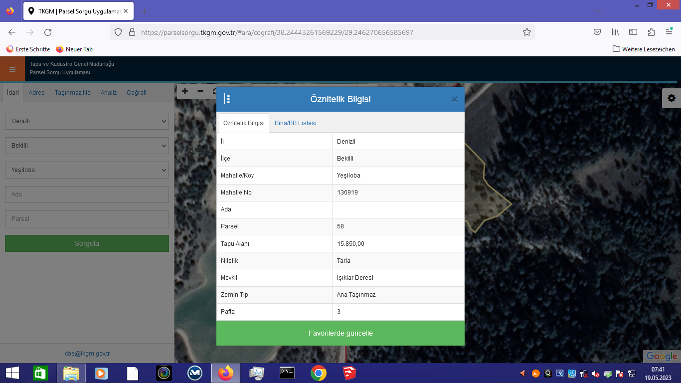 Cadastral numbers: Ada: 0 Parsel: 58