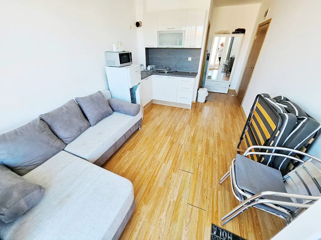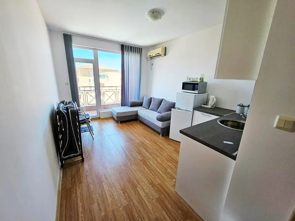 "BULGARIAN HOUSE real estate agency", offers you this bright, furnished studio apartment for sale, 3km from Sunny beach and the sea.