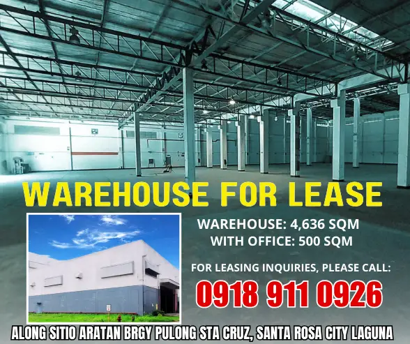 WAREHOUSE FOR LEASE IN SANTA ROSA CITY LAGUNA